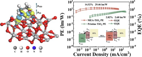 ☆ Molecular dipole engineering enabled TiO2 electron transport layers for stable quantum-dot light-emitting diodes